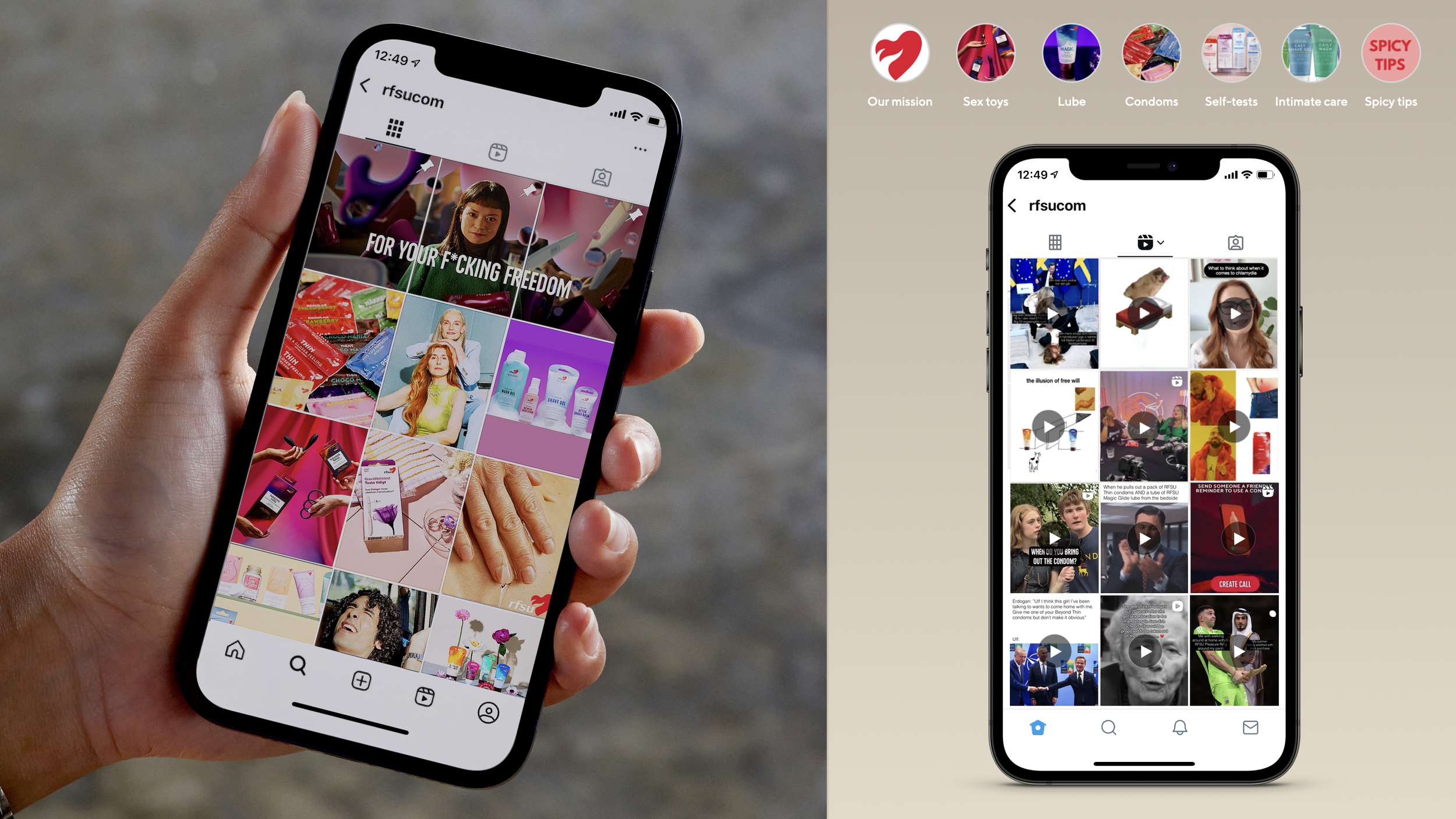 By creating two separate grids with distinct purposes, RFSU could continue sharing educational short-form videos, product-integrated memes, and humor-driven engagement formats—without losing the brand’s aesthetic.